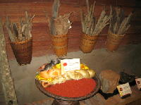 (写真左: ショップ内、 写真右: 染色材料の展示)