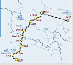 2001年に起工した西部開拓最大のプロジェクト「青蔵鉄道」は、青海省の省都である西寧からゴルムド(格爾木)を経て、崑崙(クンルン)山口を越え、チベット(西蔵)自治区の区都「ラサ」(拉薩)間を結ぶ全長1,956kmの高原鉄道です。
