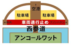 1) 2006年8月01日より「アンコールワット」西参道前の道路が通行止め
