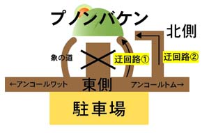 この間、プノンバケン遺跡を見学される場合、東側から入り向かって右側の迂回路を登っていただく事になります。