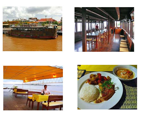 同クルーズ船は混載クルーズで、毎日 17:30〜19:00の間、プノンペンのリバーサイドから出発し王宮前を通り、カンボジアーナホテルあたりで折り返し、出発地点に戻ります。