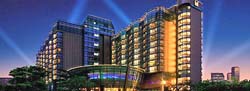 12階建て全369室、そのうちスーペーリアルームは106室(ツイン 91室)あります。スーペリアルームでも40平米とゆったりとした造りで、全室バスタブはもちろんの事、セパレートシャワーが設置されています。施設としては、中華レストランの他、グリル&バー、デリカテッセン、カフェ、ロビーラウンジ、バンケットルーム、ビジネスセンター、プール、ヘルスクラブ、ミニゴルフ場があります。又、このホテルの周囲は桜の木が植えられ、緑いっぱいの広い庭で散策もお楽しみいただけます。