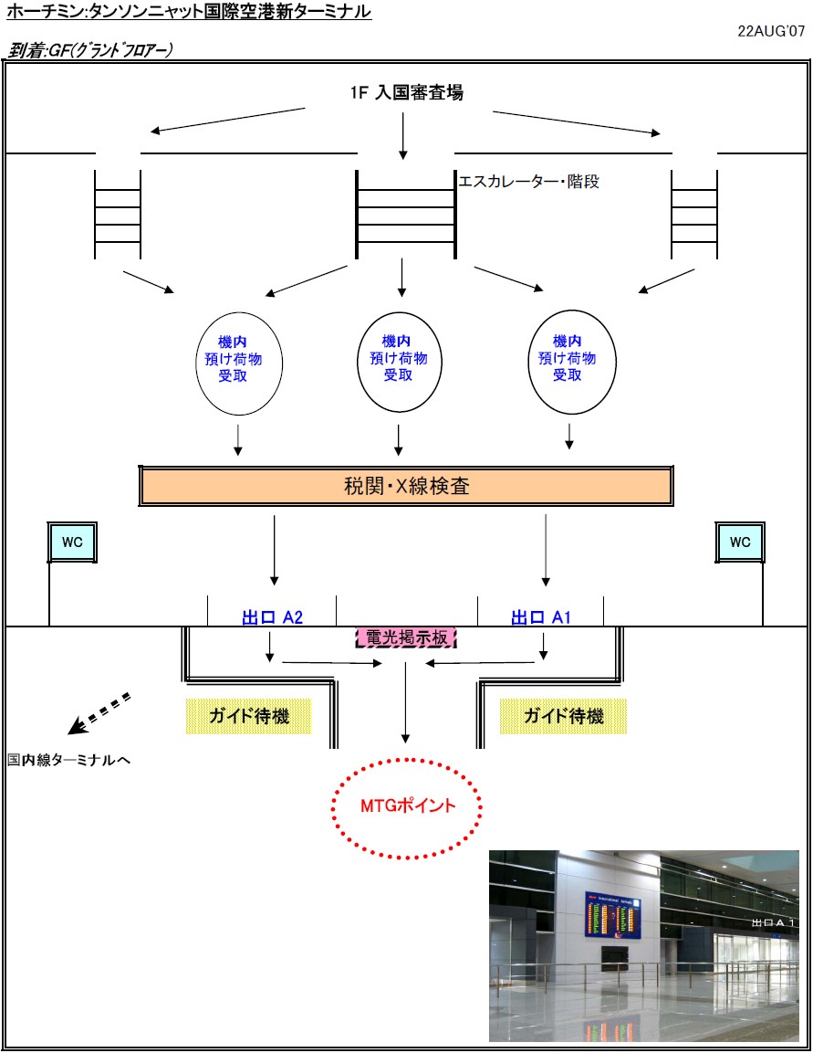 2007年9月02日のグランドオープンを予定している「ホーチミン・タンソンニャット空港」の新ターミナル到着フロア(GF)の見取り図をお知らせいたします。