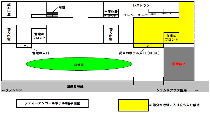 シェムリアップ市内に建つ「シティアンコールホテル」では、2007年8月24日 17:00よりG階 フロント周辺の改装工事を開始いたしました。