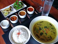 料理はクメールとアジア料理が中心で、小皿料理のスタイルです。セットメニューの対応も昼・夜ともに可能です。建物の1Fのみがレストランで、2Fは別経営のホテルになっています。又、レストランの隣にはギャラリーがあり、ここを貸切って30〜40名までのパーティも可能です。