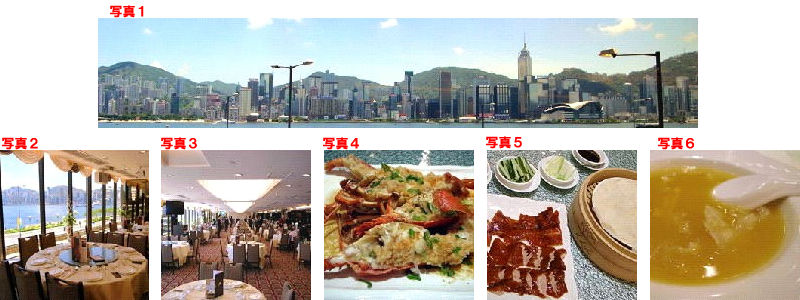 ※写真1 --- レストラン内、海側のホールから見るヴィクトリアハーバー&香港島の景色。