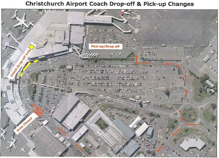 2008年10月13日より「クライストチャーチ空港」の改装工事に伴い、バス等の駐車場所が下記の通り変更となります。