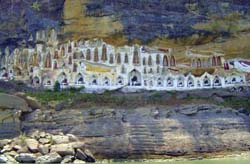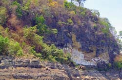 ピー郊外に「アカウッ・タウン」という石窟寺院があります.この石窟寺院はごく最近まで外国人には開放されていなかった、イラワジ川沿いにある石窟寺院です。陸の上からは何も見えませんが、一旦川に出ると、川岸に刻み込まれるように端座する仏像を見る事が出来ます。