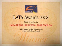 2008年11月10〜13日の期間、ロンドンにて開催されておりました「ワールドトラベルマーケット」(WTM)において、ラテン・アメリカのアマゾンでもっとも良い宿泊施設として、ペルー南東部 タンボパタ自然保護区にある「インカテラ・レセルバ・アマソニカ」が最優秀賞を受賞いたしました!