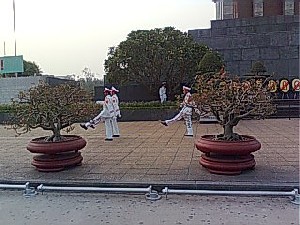 ハノイ市内にあるベトナムの英雄、ホー・チ・ミン氏の遺体が安置されている「ホーチミン廟」前では、1年365日、1日24回、1時間毎に「衛兵交替式」が行われております。