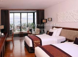 客室はシンプルモダンなデザインで、エアコン、42インチ液晶テレビ、ミニバー、セーフティボックスが備わっています。ガーデンビューとオーシャンビューのカテゴリーがあり、全室バルコニー付きなので、ここでのんびり外の景色を眺めながら過ごすのも贅沢なひと時です。尚、バスルームはほとんどがシャワーのみですが、バスタブ付きにこだわらなければ、お部屋も広く(40平米)、大変快適に過ごせるホテルですので、個人のみならずグループのお客様にもおススメしたいホテルです。