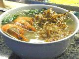 エビからとった出汁をベースにしたスープに、エビはもちろん豚肉やもやしなどの野菜を乗せて出されます。