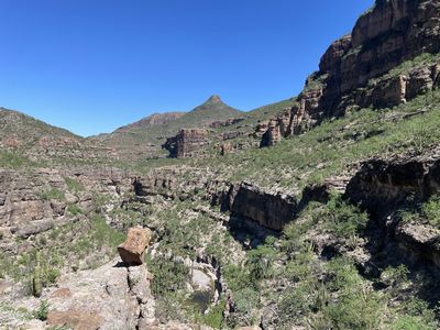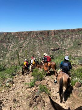 人間の足では歩くのが難しいほどの険しい断崖絶壁の峡谷を下っていきます。どんなアトラクションよりもスリル満点ですが、ラバの強脚をひたすら信じつつ、絶景も楽しみながら進みます。