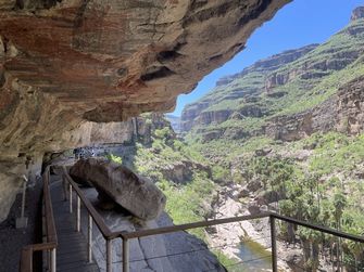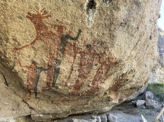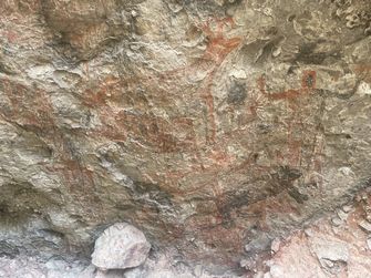 実際に岩絵を見に行くには、さらにラバに揺られ、最後は自分の足で崖を上り下りし、峡谷の両岸の断崖絶壁に密かに、しかしくっきりと残る岩絵にたどり着きます。その感動は言葉にならないほどです。