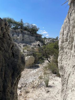 この渓谷で近年特に注目されているのが、数千〜数百万年前の地層に残された恐竜の足跡(icnitas de dinosaurios) です。乾燥した荒野にぽつんと現れる足跡は、まるで恐竜たちがつい昨日歩いたかのように鮮明で、地球の太古の歴史をダイレクトに感じさせてくれます。恐竜のさらに前の時代はこの辺りは海だったと言われており、海底が隆起した地層や、貝の化石も見ることができます。
