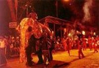 電飾で彩られたきらびやかな衣 装をまとった百頭もの象や多くのダンサーが松明をかざし、太鼓を鳴らして共に行列をする光景は圧巻です。