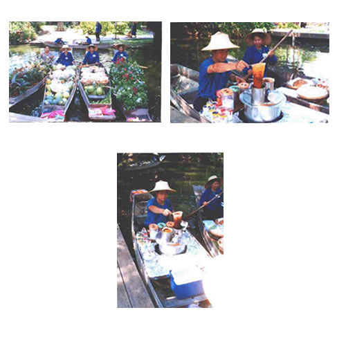 通常の水上マーケットの様に果物、クッキー、タイスタイルのコーヒーや紅茶、タイのお菓子・デザートなどが販売されております。