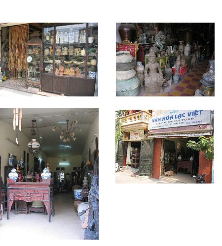 ソフィテルプラザホテル側、土手沿いの道に10軒ほどの骨董屋さんが軒を連ねる骨董通りがあります。