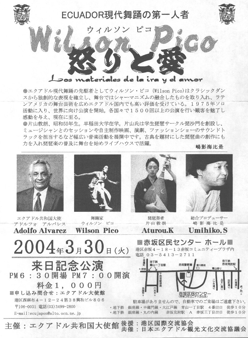 エクアドル現代舞踊の第一人者 ウィルソン ピコ の来日公演が、下記の通り開催されます。