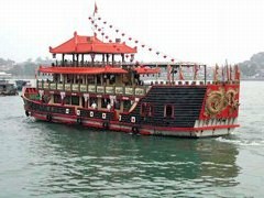 船は先頭に龍、側面は鳳凰で飾られている豪華な作りで、全長32m、3階建て、収容人数258名です。