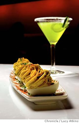 ローズカラーの照明でムーディな雰囲気の中、おいしいフュージョン料理が楽しめます。