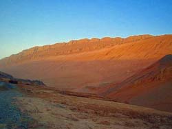 トルファン盆地の北端に約100kmに渡って連なる山脈。海抜は約500m。