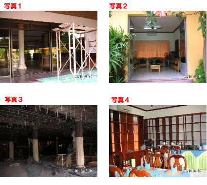 *レストラン --- エアコンを切り替えるため、全面的に修復中。