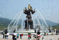 無錫の馬山地区にある「九龍灌浴」では、7.2mの黄金に輝く太子像が仏教音楽が流れる中、巨大な蓮の中から徐々に現れ、高さ4mにもなる噴水を浴び、8名の供養菩薩に囲まれながら一周するといった釈迦誕生のパフォーマンスを見る事が出来ます。