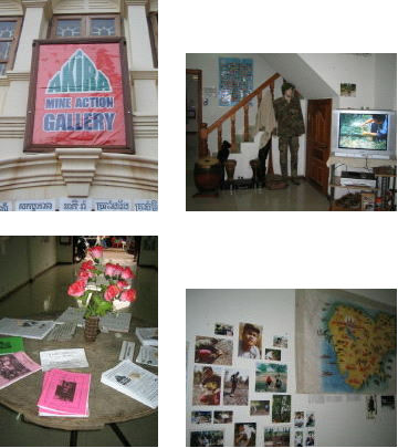 同ギャラリーでは、地雷や不発弾等の直接の展示はありませんが、内戦中の悲惨な状況を表した絵や様々な資料等が展示されております。又、1日おきに地雷の犠牲となった子どもたちによるカンボジアの歴史を再現するミュージカルも行われております。(18:30〜)