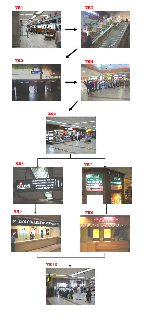 ■写真6〜9 --- 出国審査通過後、左に進むと免税店で購入した商品の「受取所」がございます。