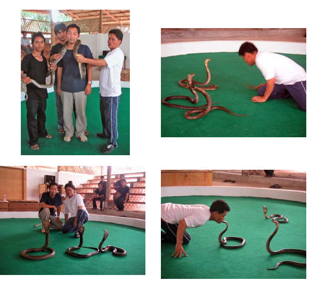 前座として(リクエストベース)、バイヨン寺院の壁画にも残っている「闘鶏ショー」から始まり(約15分)、残り45分がコブラショーとなります。