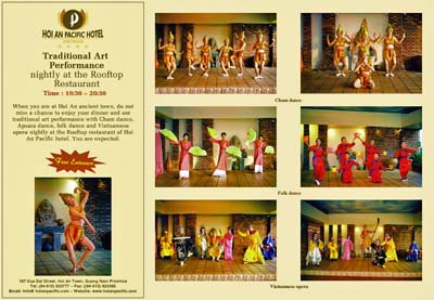 世界遺産の街 ホイアンにある4ッ星ホテル「ホイアン・パシフィック・ホテル」の「ザ・ルーフ・トップ・レストラン」にて、伝統舞踊ショーが始まりました。