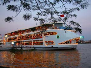 魚の顔が愛らしいホーチミンのナイトクルーズ船「ベンゲー号」の乗り場は、サイゴン川沿いにあるTon Duc Thang ST.(トンドクタン通り)のサイゴン川側に位置します。